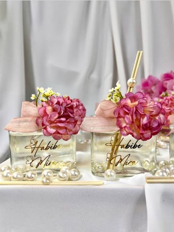 Zey Tasarım’ın ürün yelpazesi oldukça geniştir. Kolonya ve sabun şişeleri, çikolata sunumları, lavanta keseleri, magnetler, şekerlemeler, mumlar ve kına hediyelikleri; organizasyon konseptine uygun şekilde hazırlanabiliyor. İsim, tarih ve özel mesaj detaylarıyla kişiselleştirilen ürünler, davetlilere hem şık hem de kalıcı bir hatıra sunuyor. Bu çeşitlilik, İstanbul nikah şekeri yapan yerler arasında Zey Tasarım’ı öne çıkaran önemli unsurlardan biri oluyor.