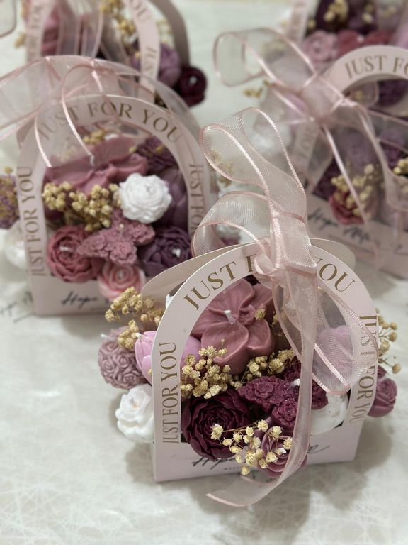 17 çiçekli mum sepetimiz, firmamızın kendi tasarımı olup en sevilen modeldir. Farklı renk tonlarına ve modellerine sahip çiçeklerin uyumuyla harmanlanmıştır. Ölçüleri 12x6x4 cmdir. Konsepte uygun şekilde çiçek renklerinde değişiklik yapılabilir. Tüm modellerimiz doğa soya wax ile üretilir, parafin içermez. Kokuludur. Minimum sipariş adedi 20'dir.