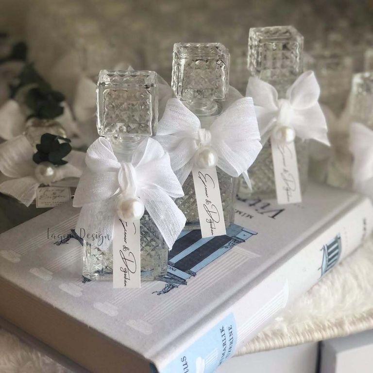 1. Kolonya ve sabun hediyeliği olarak tercih edilen bu şık şişeler, mis kokusu ve kullanışlı yapısıyla davetlilerin günlük hayatta da değerlendirebileceği zarif bir detaydır.