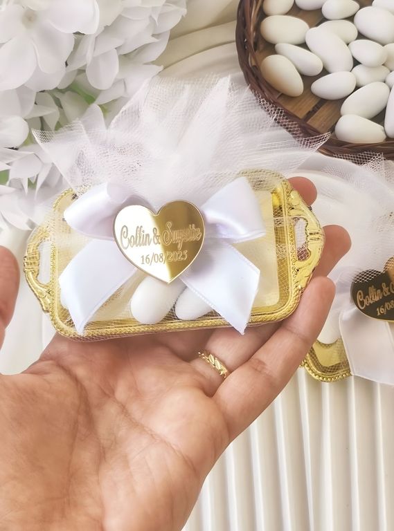 Nikah törenlerinin sade ve resmi yapısına uyum sağlayan şık bir hediyelik yaklaşımı sunar.
