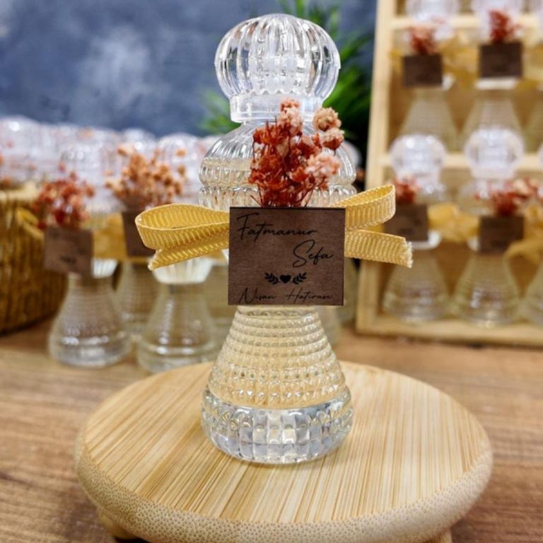 1. Kolonya ve sabun hediyeliği olarak tercih edilen bu şık şişeler, mis kokusu ve kullanışlı yapısıyla davetlilerin günlük hayatta da değerlendirebileceği zarif bir detaydır.