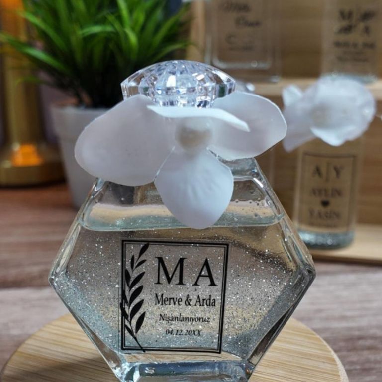 1. Kolonya ve sabun hediyeliği olarak tercih edilen bu şık şişeler, mis kokusu ve kullanışlı yapısıyla davetlilerin günlük hayatta da değerlendirebileceği zarif bir detaydır.