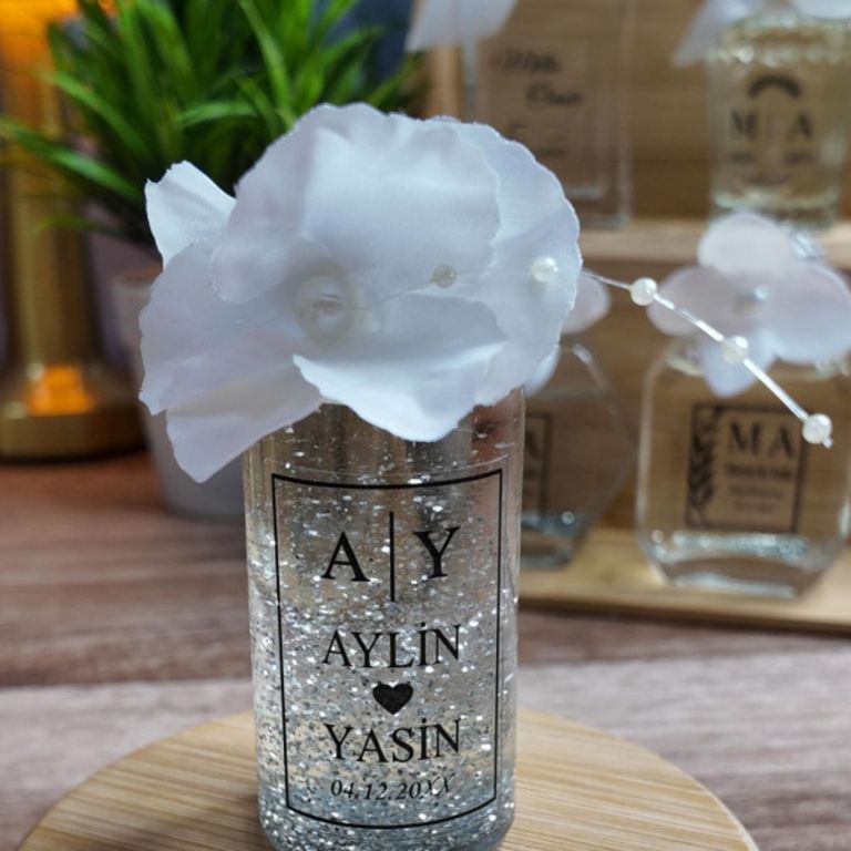 1. Kolonya ve sabun hediyeliği olarak tercih edilen bu şık şişeler, mis kokusu ve kullanışlı yapısıyla davetlilerin günlük hayatta da değerlendirebileceği zarif bir detaydır.