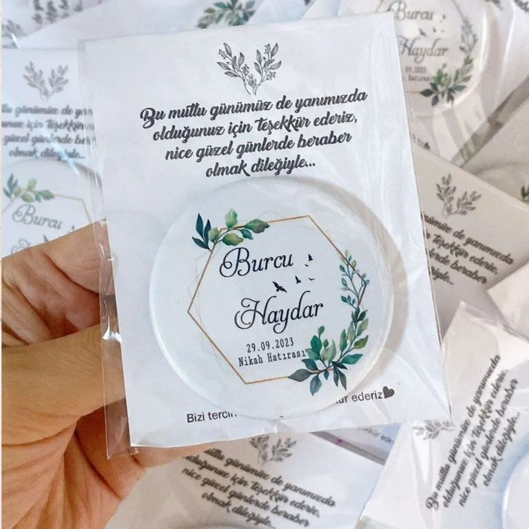 - Magnet hediyeliği olarak hazırlanan bu ürünler, isim ve tarih bilgileriyle özel günlerin uzun süre görünür kalmasını sağlar.