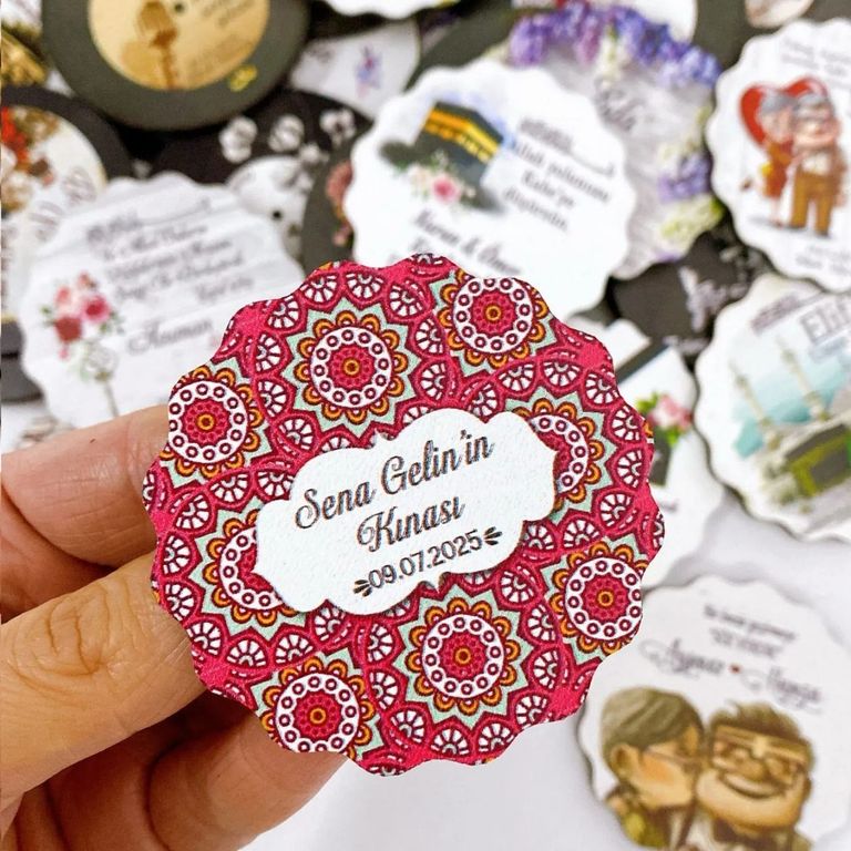 Magnet hediyeliği olarak hazırlanan bu ürünler, isim ve tarih bilgileriyle özel günlerin uzun süre görünür kalmasını sağlar.