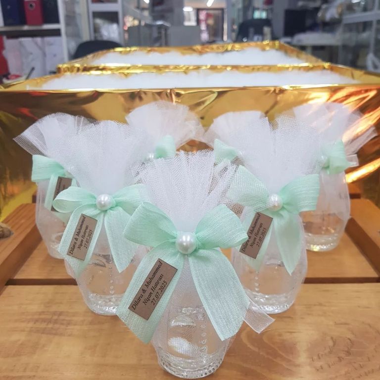 - Kolonya ve sabun hediyeliği olarak tercih edilen bu şık şişeler, mis kokusu ve kullanışlı yapısıyla davetlilerin günlük hayatta da değerlendirebileceği zarif bir detaydır.