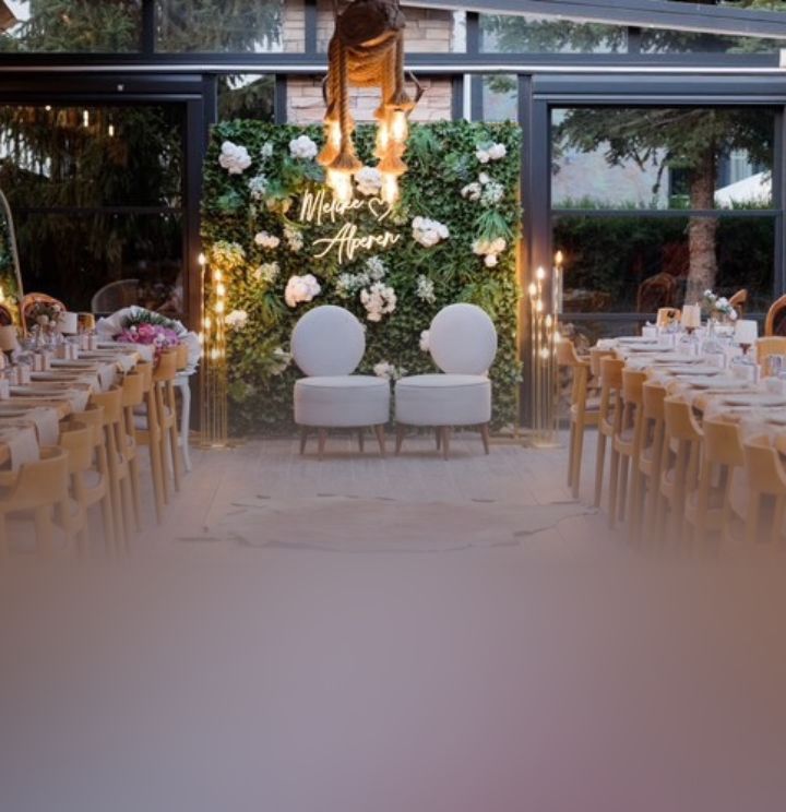 Modern ve ihtişamlı • Fotoğraf çekim alanı • Menü tadımı • Geniş dans pisti • DJ • Sahne ışık sistemi • Nişan süslemesi • Nişan tepsisi