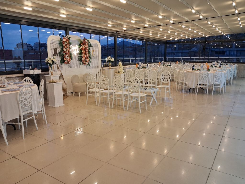 Mekanımız, hem deniz, hem doğa hem de şehir manzarasına hakim; şık, aydınlık ve ferah bir alan olarak siz ve misafirleriniz için sımsıcak bir atmosfer yaratıyor. Açılır-kapanır tavanıyla her mevsime uyum sağlayan mekanımız, özenle tasarlanmış sahnesi ve geniş oyun pisti ile davet boyunca eğlencenizin kesintisiz olmasını sağlıyor. İsterseniz çay veya kahve molası verebileceğiniz geniş terasımızda keyifli anlar yaşayabilirsiniz.