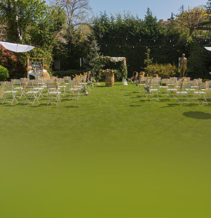 Kır düğünü ışıklandırması var. • Bohem konsept uyguluyor. • Zeminde doğal çim kullanıyor. • Özel açık nikah alanı var. • Fotoğraf çekim alanı mevcut. • Dünya mutfağı menüsü sunuyor. • Canlı müzik seçeneği sunuyor. • Büyük gelin odası veriliyor.