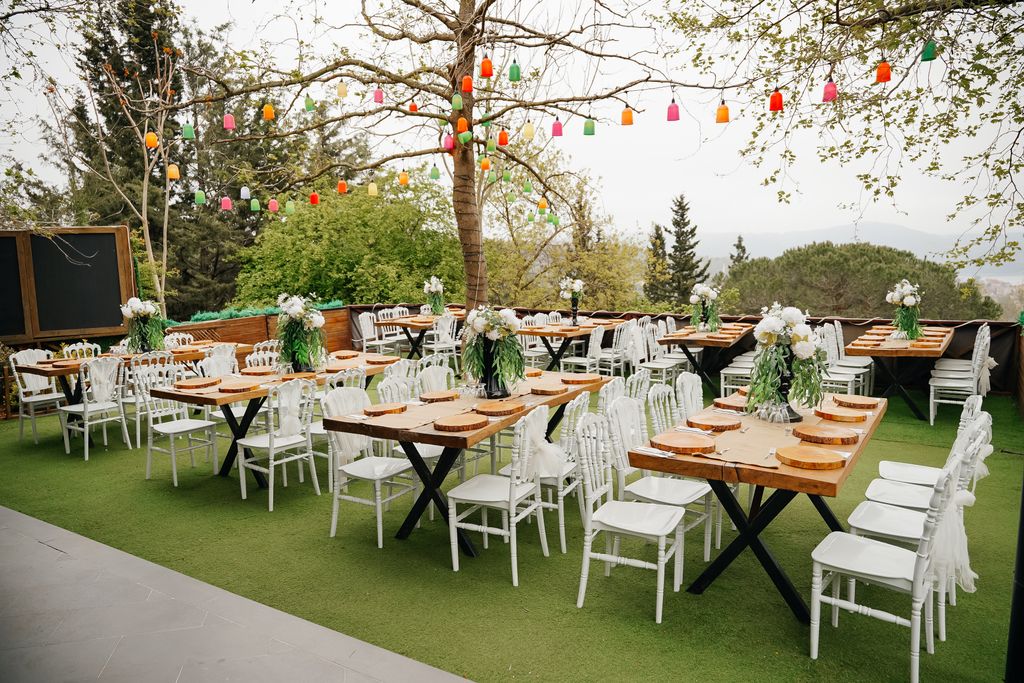 ●Yuvarlak masalarla ve beyaz tiffany sandalyelerle hizmet veriyoruz.