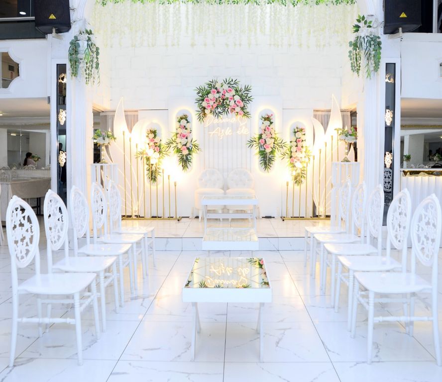 İstanbul Anadolu Yakası söz nişan mekanlarından olan firma, söz ve nişan günleriniz için özel olarak tasarlanmış napolyon beyaz sandalye ve beyaz masa rengiyle donatılmış, şık ve sade bir atmosfere sahip. Salonumuz, beyaz konseptiyle sadeliği ve zarafeti vurgulayan düzenlemelerle öne çıkıyor. Detayların titizlikle düşünüldüğü bu orijinal mekanımızda, misafirlerimizin beklentilerini en iyi şekilde karşılamak için örnek masalar da özenle hazırlanıyor.