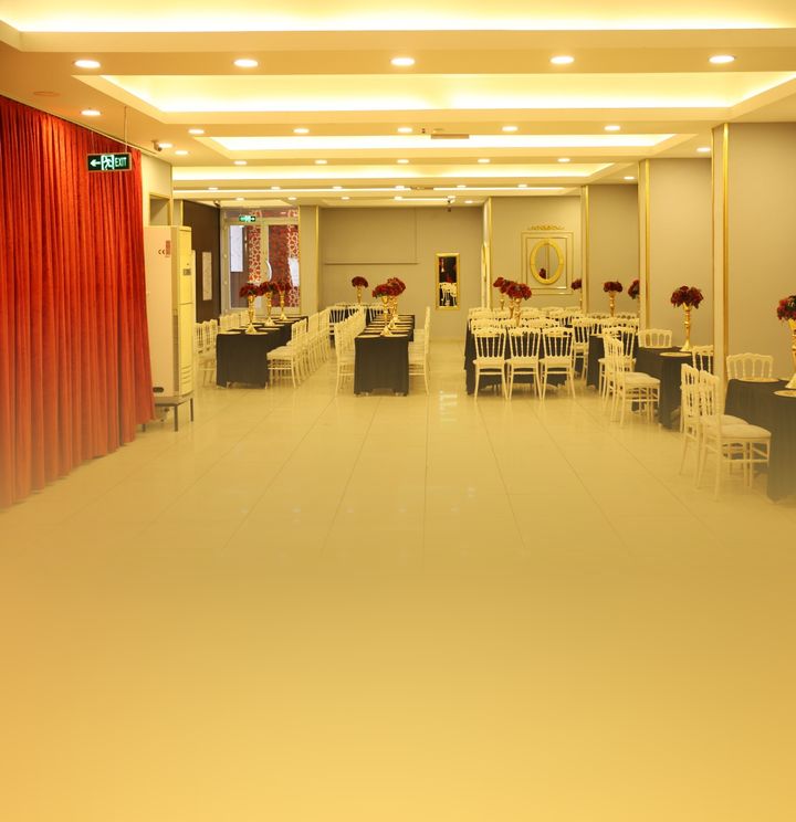 Süslemesi modern ve sade. • Büyük dans pistine sahip. • Canlı müzik / DJ seçeneği var. • Kolay ulaşılabilir konumda. • Nişan tepsisi temin ediyor. • Nişan süslemesi yapıyor. • Boş mekan kiralanabiliyor.