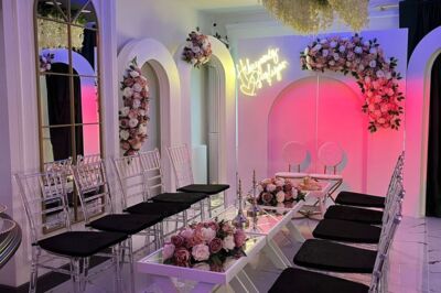 Modern ve sade • Yüksek tavan • DJ • Alkol servisi yok • Kolay ulaşım • Nişan süslemesi • Nişan tepsisi • Boş mekan kiralama
