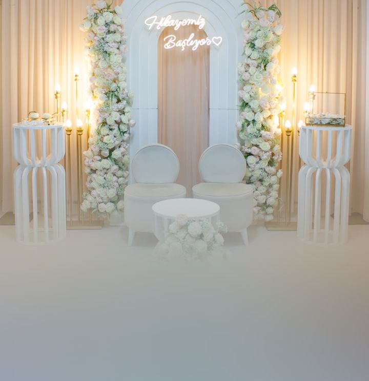 Modern ve sade • Yüksek tavan • Fotoğraf çekim alanı • DJ • Alkol servisi yok • Nişan süslemesi • Nişan tepsisi • İsteme alanı